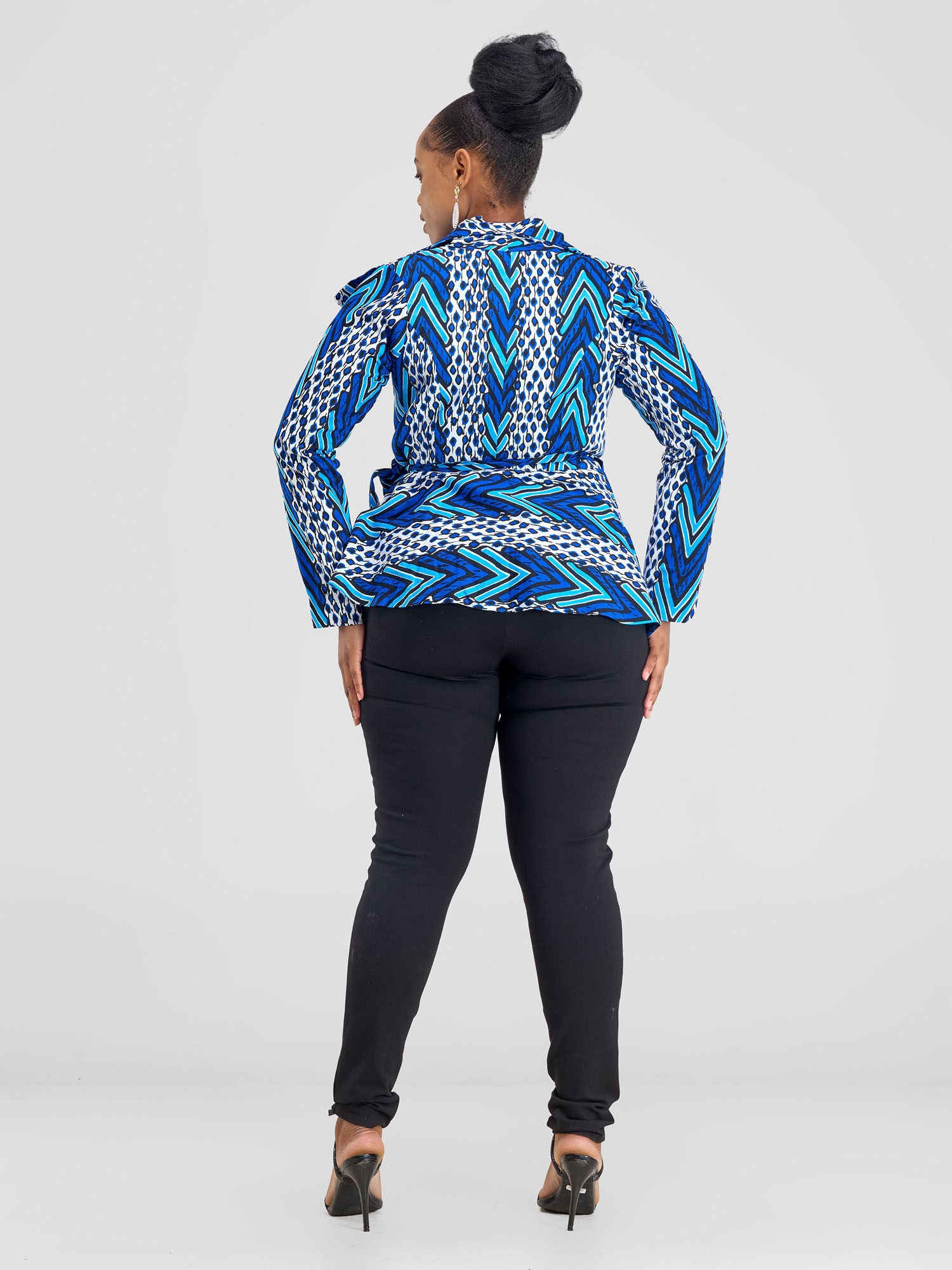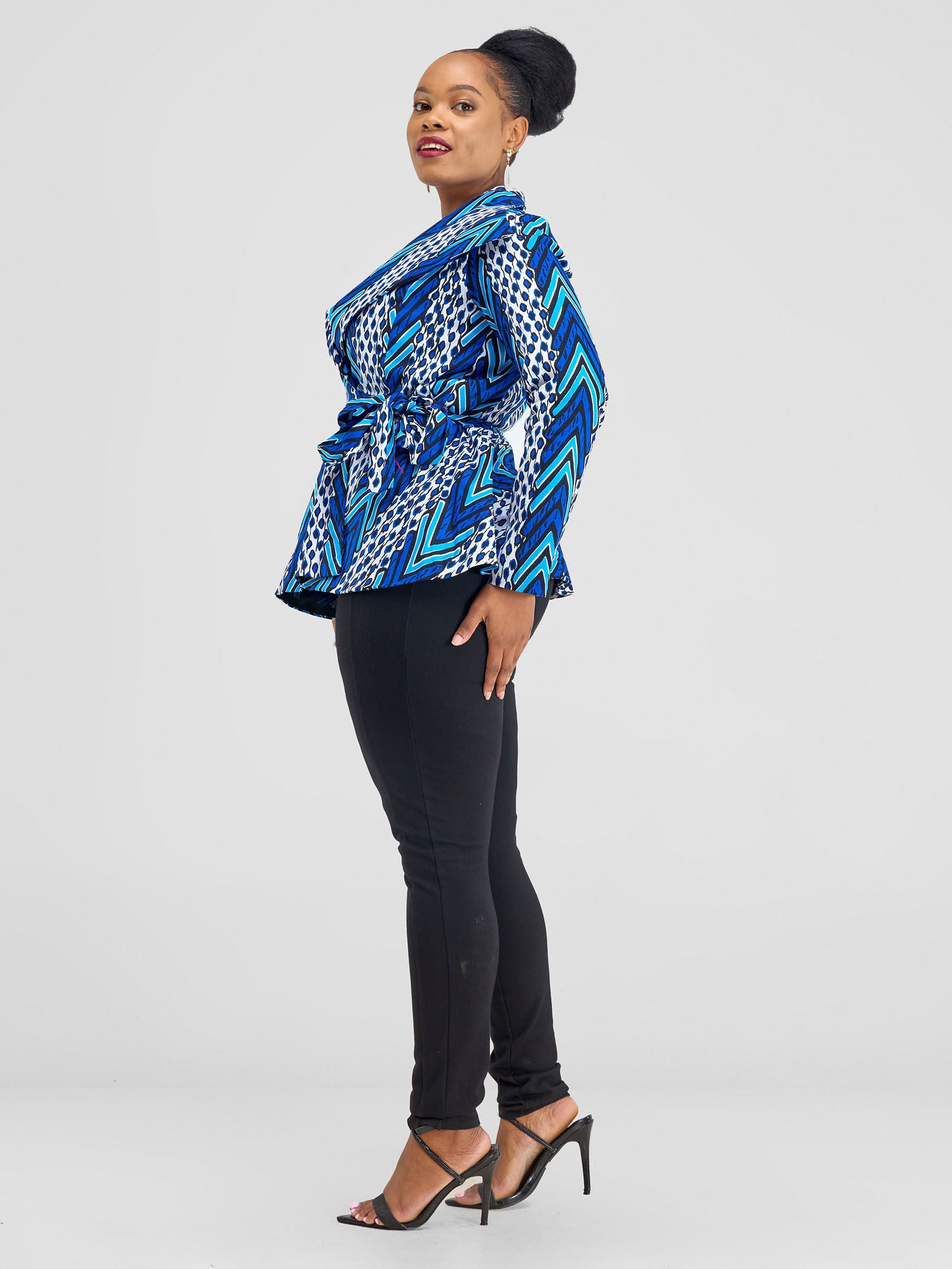 Step out in bold style with our stunning Blue and White Print Dela Coat, featuring an extended lapel for a striking silhouette. Crafted from premium Kitenge fabric, this coat is a perfect blend of traditional African prints and modern design. Whether you're dressing up for a special occasion or adding a unique touch to your everyday look, this coat is sure to turn heads.
