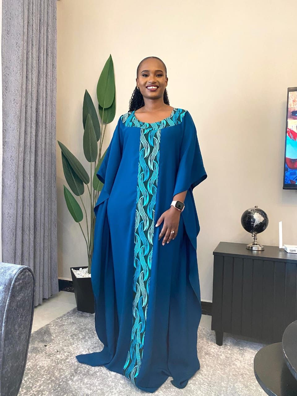 "Embrace effortless style in our KAFTAN maxi dress! The stunning turquoise hue is complemented by a touch of Ankara detailing in the middle, adding a unique and eye-catching element. Comfort meets fashion in this must-have piece. Elevate your wardrobe with our KAFTAN dress!"