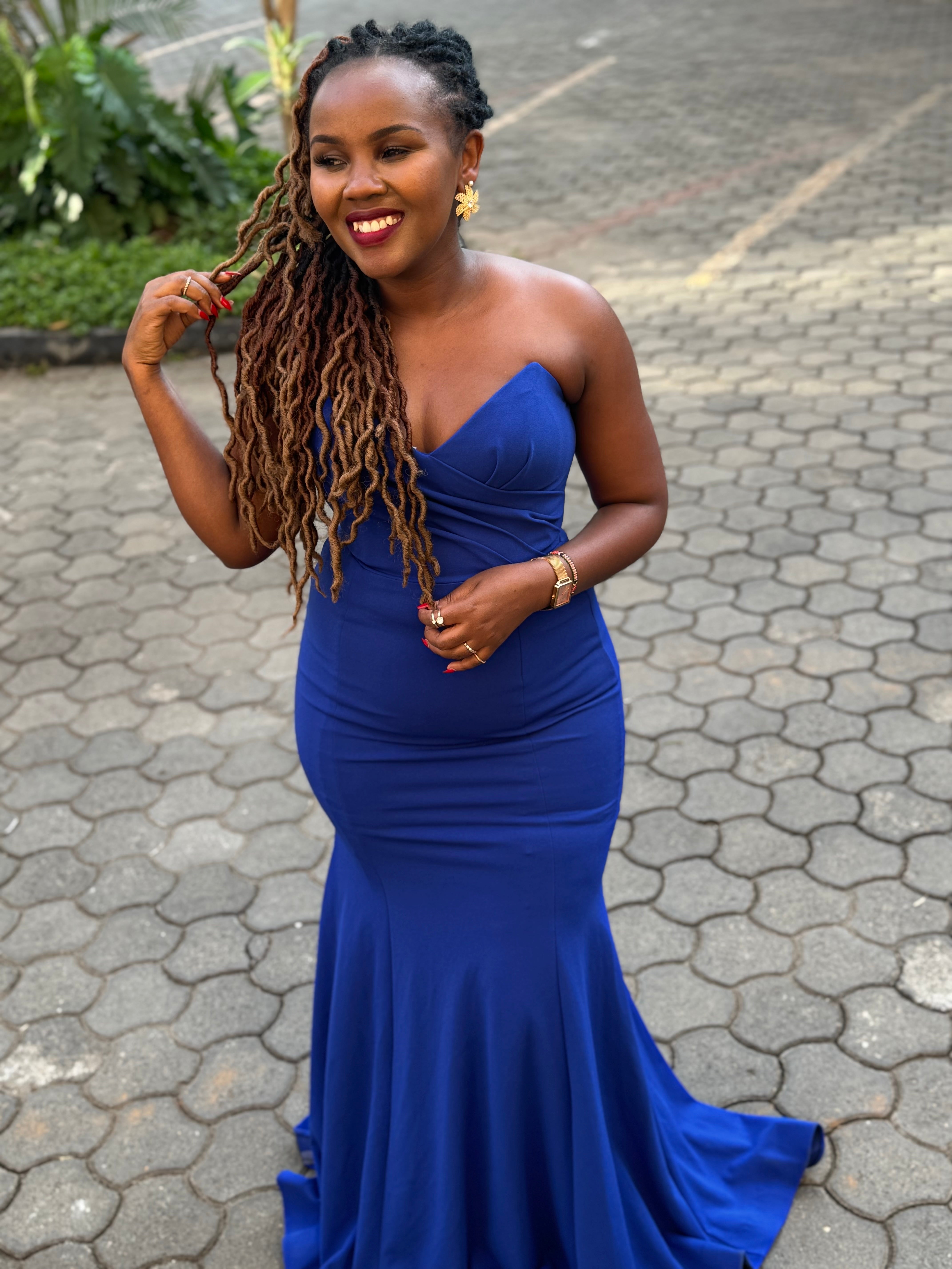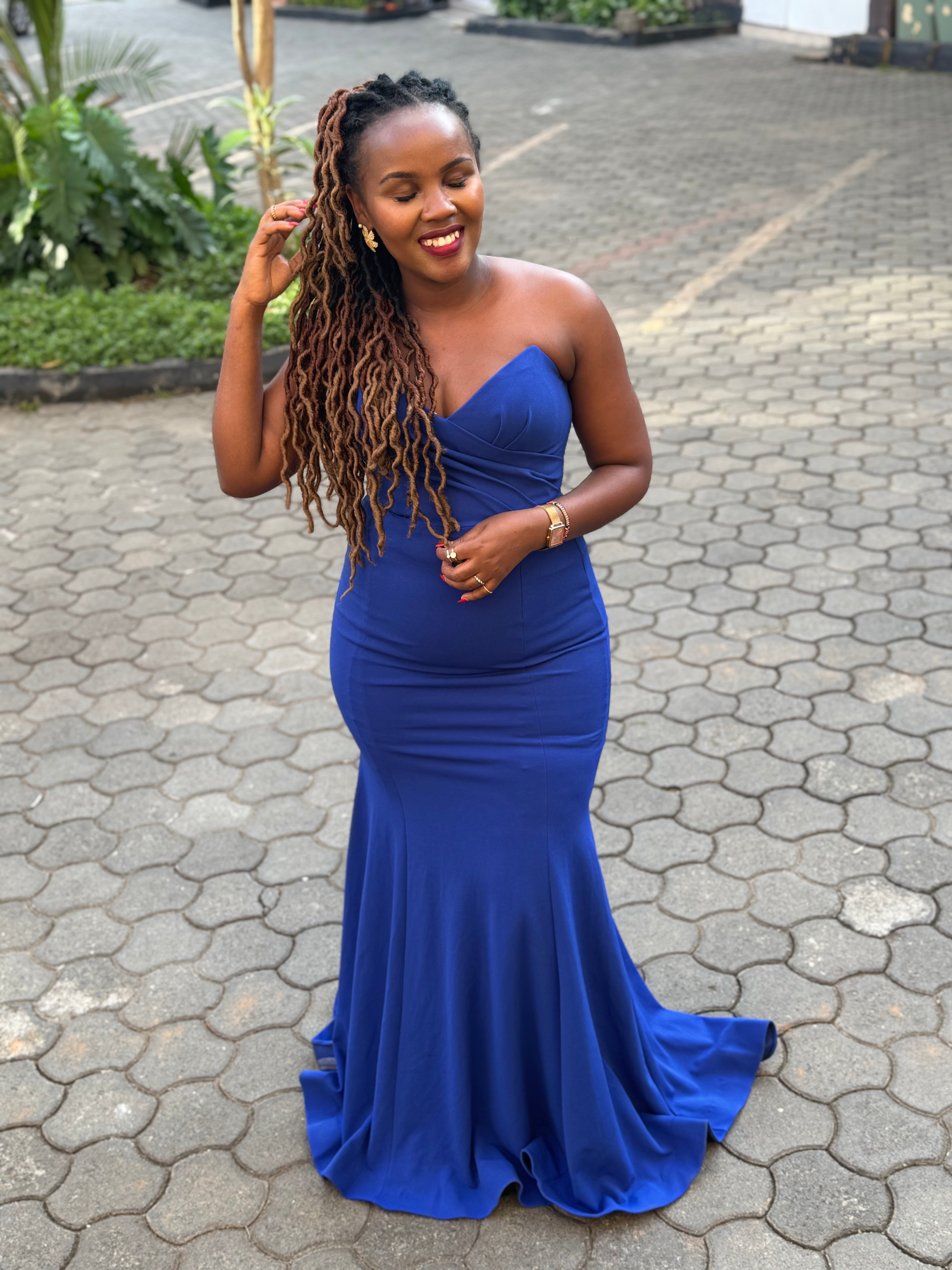 Turn heads and exude confidence in this breathtaking strapless floor-length blue gown. Designed for timeless elegance, this gown features a sleek, form-fitting bodice that beautifully accentuates your silhouette before flowing into a graceful, sweeping skirt. The rich blue hue adds a touch of sophistication, making it perfect for gala nights, weddings, or any special occasion where you want to stand out. Whether paired with statement jewelry or worn with minimalist accessories, this gown ensures effortless glamour from every angle.