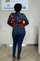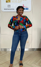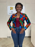 Elevate your style with the Amanda Crop Coat, showcasing a vibrant blue Ankara print that radiates sass and chic vibes. Perfect for brunch or casual outings, this coat pairs beautifully with fitted black jeans or a bodycon dress, empowering you to express your unique flair effortlessly!