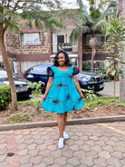 Transform your wardrobe with our ASHA DRESS TURQUOISE! This A-line round dress boasts vibrant turquoise and playful puffy black sleeves. Perfect for casual weekends and events, it's the ultimate statement piece. Elevate your style and confidence with ASHA DRESS TURQUOISE!