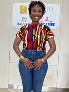 The Keisha Top is an elegant Ankara t-shirt designed to pair seamlessly with pants. Its unique fabric offers breathability, making it suitable for various occasions. The vibrant patterns not only enhance visual appeal but also reflect cultural artistry, providing a sophisticated choice for stylish versatility.