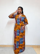 Introducing the LELA MAXI SHIRT DRESS - your perfect summer statement piece! This stunning dress features a bold orange print that will make heads turn. The front slit adds a touch of edginess while the short sleeves keep you cool and comfortable. Upgrade your wardrobe with this versatile and stylish dress now!