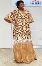 Embrace elegance with the Lulu Kaftan! This stunning brown Ankara fabric maxi dress offers a rich aesthetic paired with practical pockets. Designed for taller figures, it’s effortlessly stylish and easy to accessorize, making it perfect for any occasion. Elevate your wardrobe with this versatile piece!