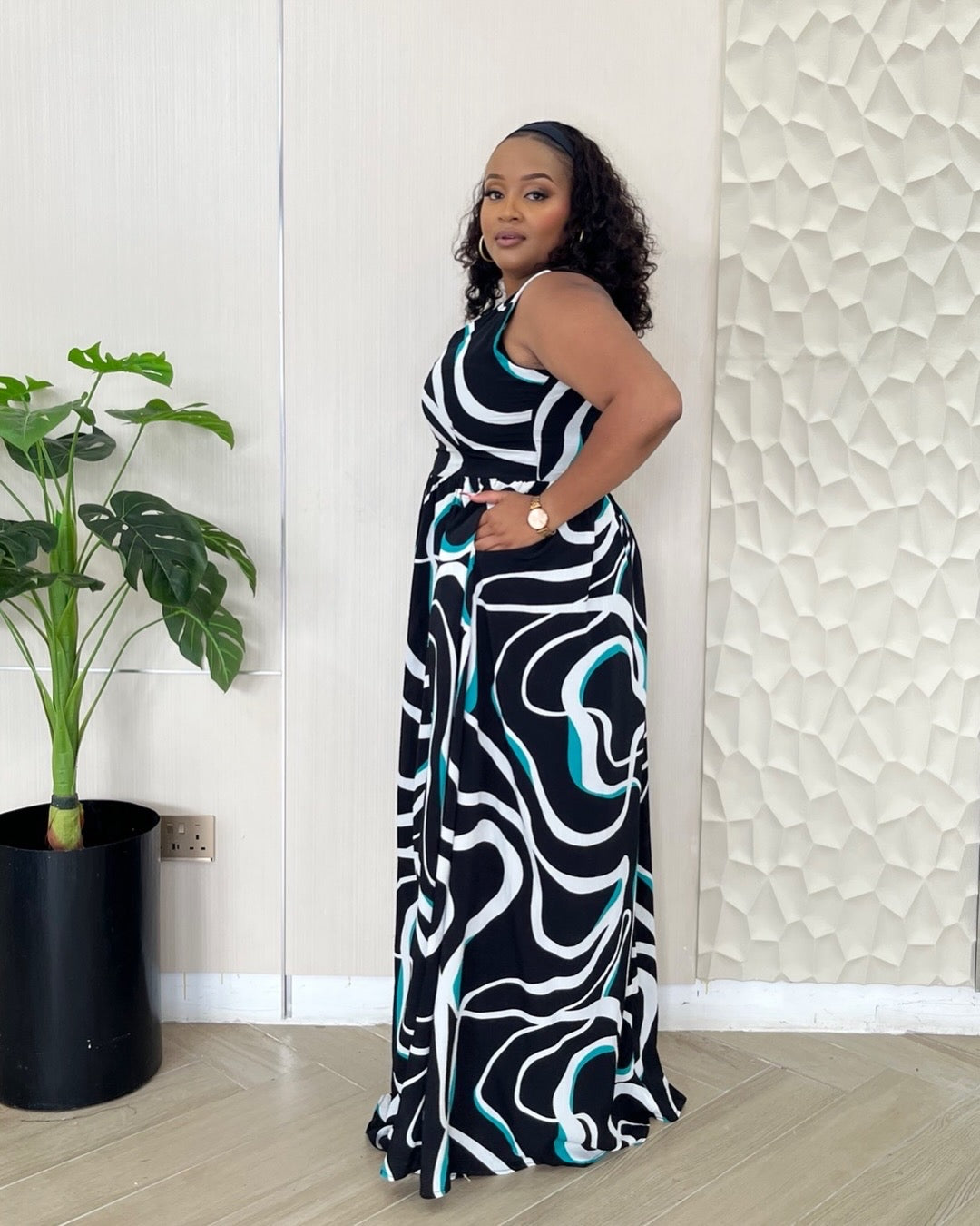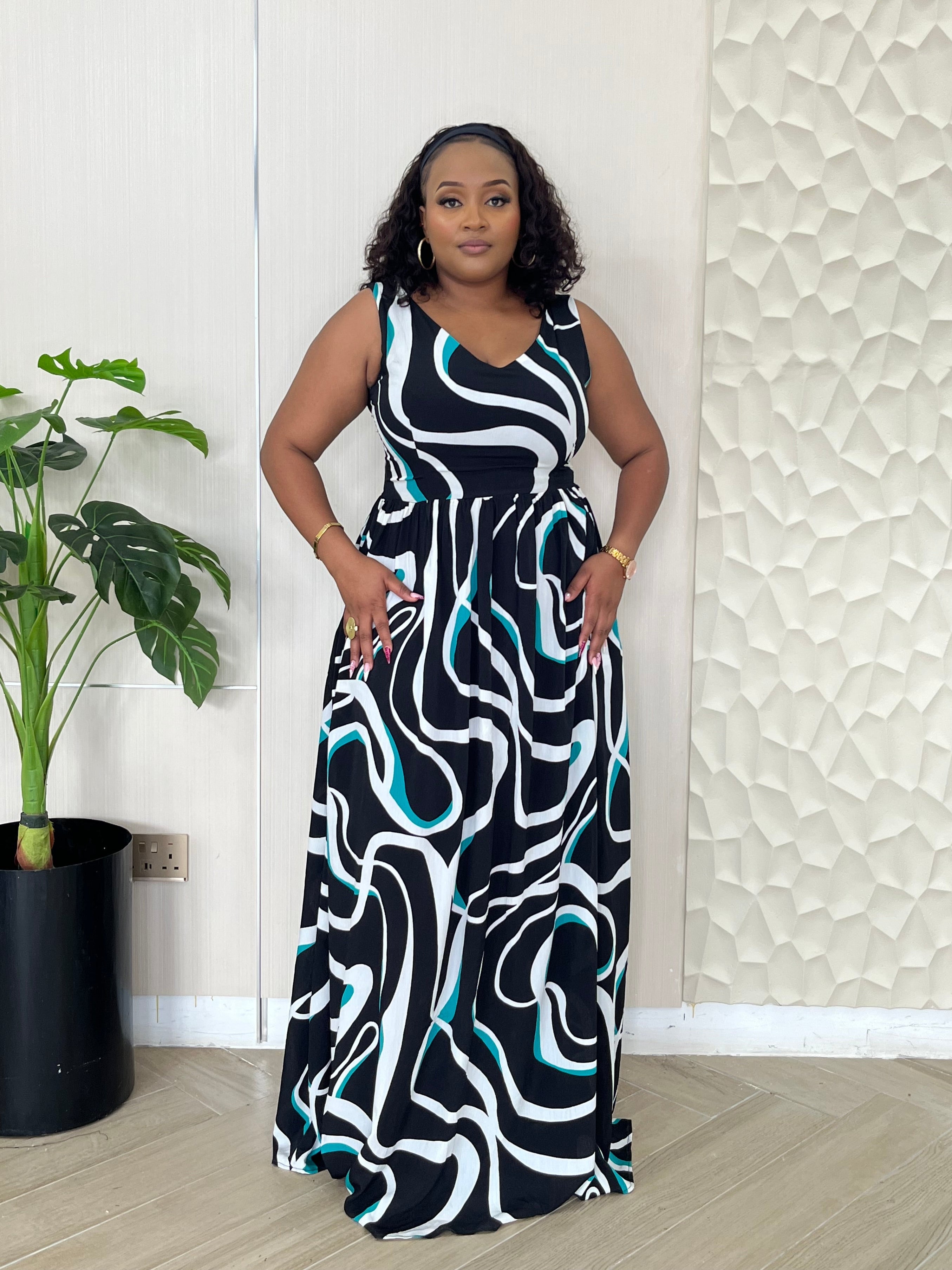 The Mali Maxi is a sleeveless dress crafted from breathable fabric, ensuring comfort during eventful days. Its elegant design allows for versatility, making it suitable for various occasions. This dress combines functionality with aesthetic appeal, offering a sophisticated option for warm weather outings.