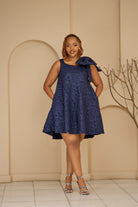 Elegance and sophistication come together in our Short Navy Textured A Line Dress. Featuring a delicate shoulder bow, this dress is perfect for any occasion. The chic and classy design will make you stand out and leave a lasting impression. Perfect for confident and stylish individuals.