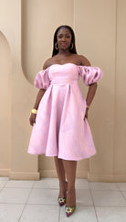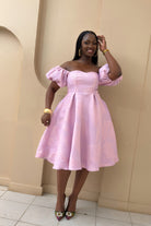 Get ready to turn heads in the Sasha Dress! This elegant pink midi dress features a chic off-shoulder design and stylish puffy sleeves. Perfect for any event, this dress will make you feel confident and stylish. Get ready to make a statement!