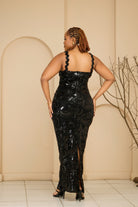 "Shine bright like a diamond in The Obsidian Maxi - a sleek and sexy bodycon dress. With its shiny black fabric and elegant straps, it's the perfect choice for a sophisticated date night. Turn heads and show off your feminine charm with this show-stopping piece."