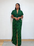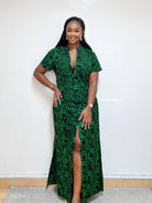 Introducing the LELA MAXI SHIRT DRESS! This stunning green dress features a maxi length, button front, and short sleeves with side slits. Perfect for any occasion, it offers comfort and style in one. Embrace effortless elegance with the LELA MAXI SHIRT DRESS.