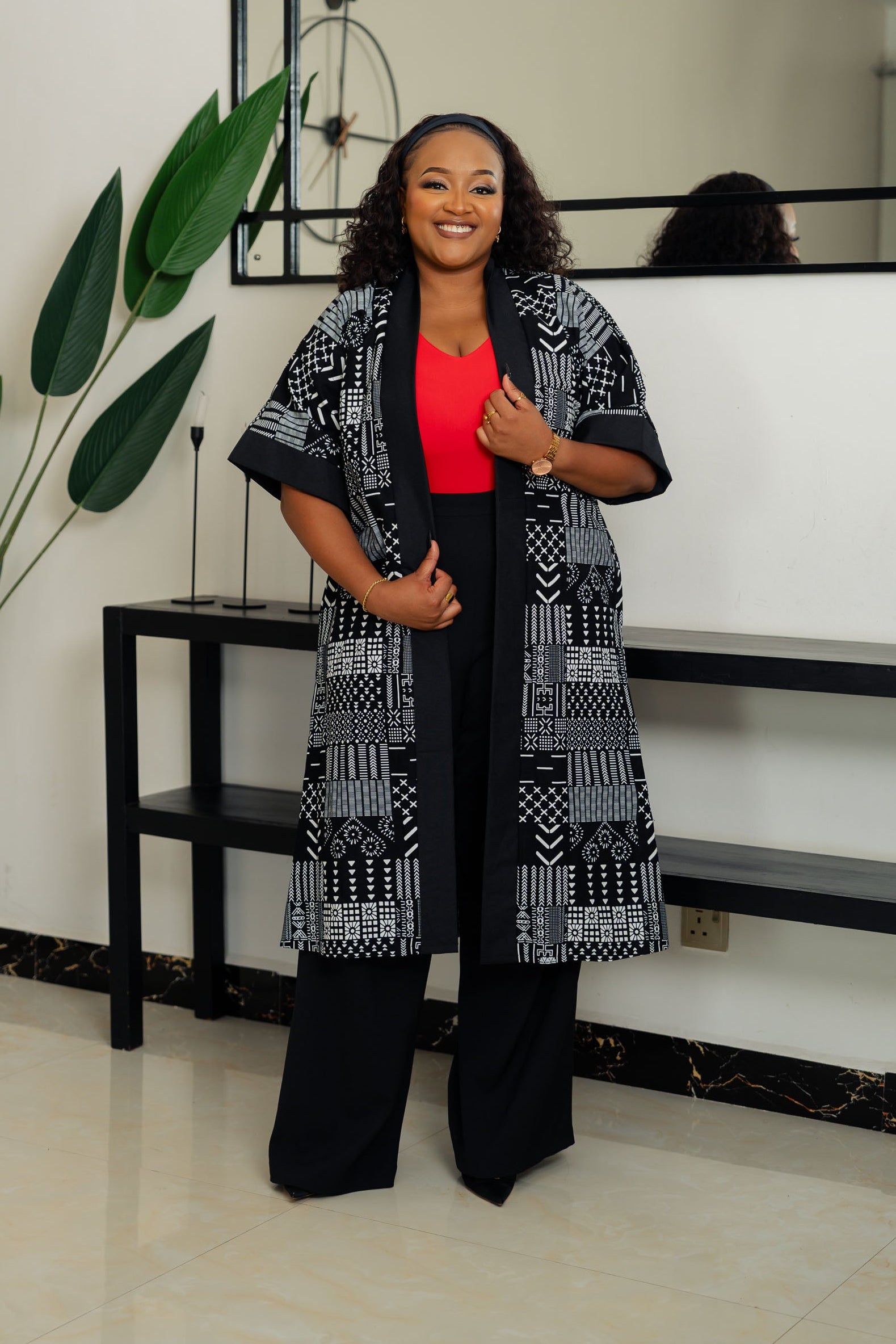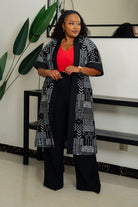 Become the envy of every event with our Mwanga Kimono B&W! This medium length kimono stuns in classic black and white, making it the perfect choice for any occasion. Whether it's a special event or a casual Friday at the office, this kimono will elevate your style and leave a lasting impression.