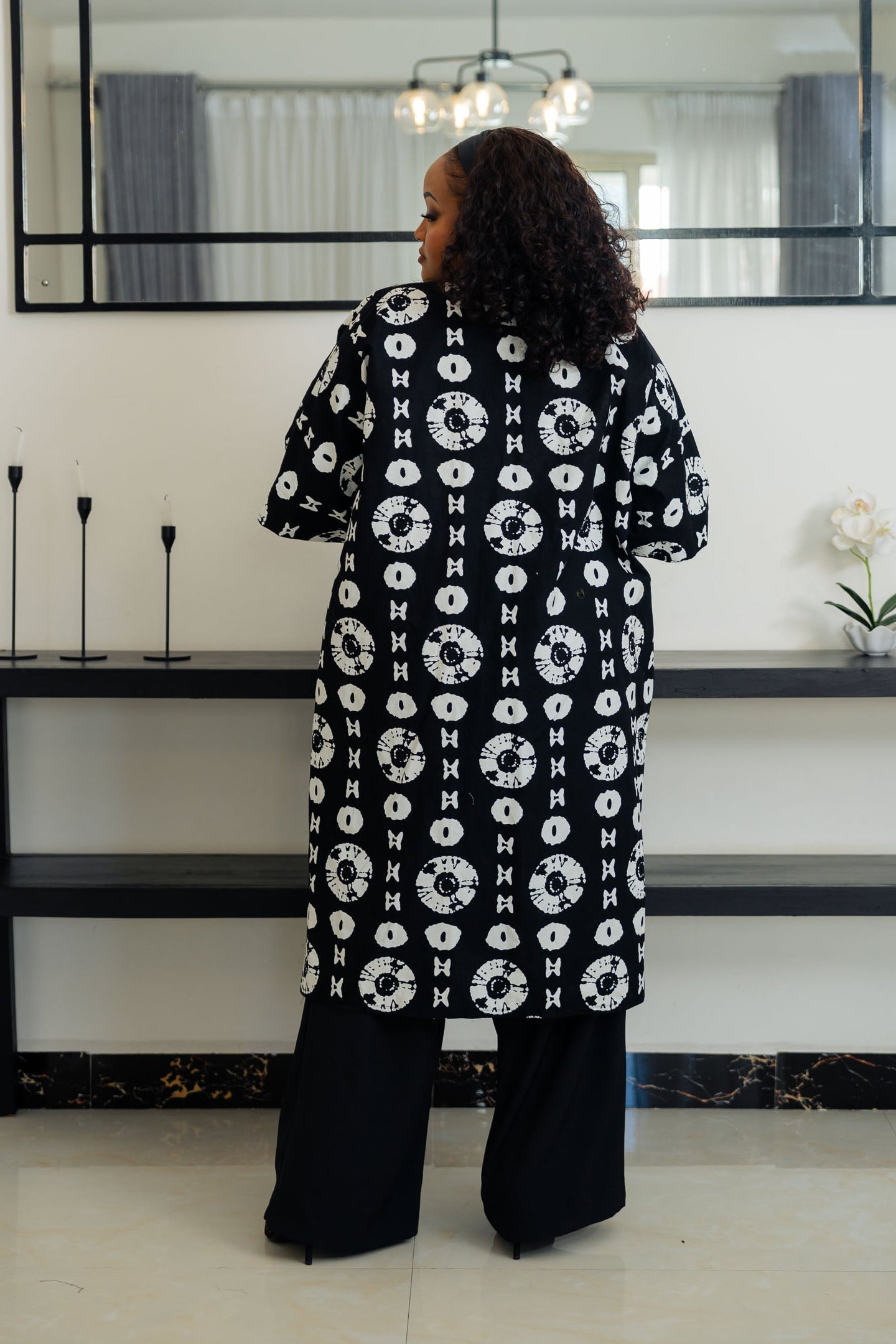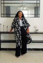 Meet the Mwanga Kimono B&W – your new wardrobe chameleon! This snazzy black and white Ankara short kimono can strut its stuff at the office or chill at brunch (hello, mimosas!). Slip it on and you're instantly classy, cool, and just a tad quirky. Fashion just got fun!