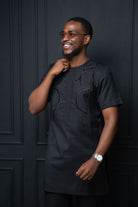 Meet Dapa! Crafted from premium materials, this shirt features black hue with sleeves that end just below the elbow, offering a flattering tailored fit for the modern man.