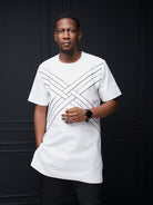 "Embrace adventure with the Blair Shirt. Featuring a bold x fabric design on a crisp white background, this mens shirt stands out from the rest. Take a daring step and make a statement with your style!"