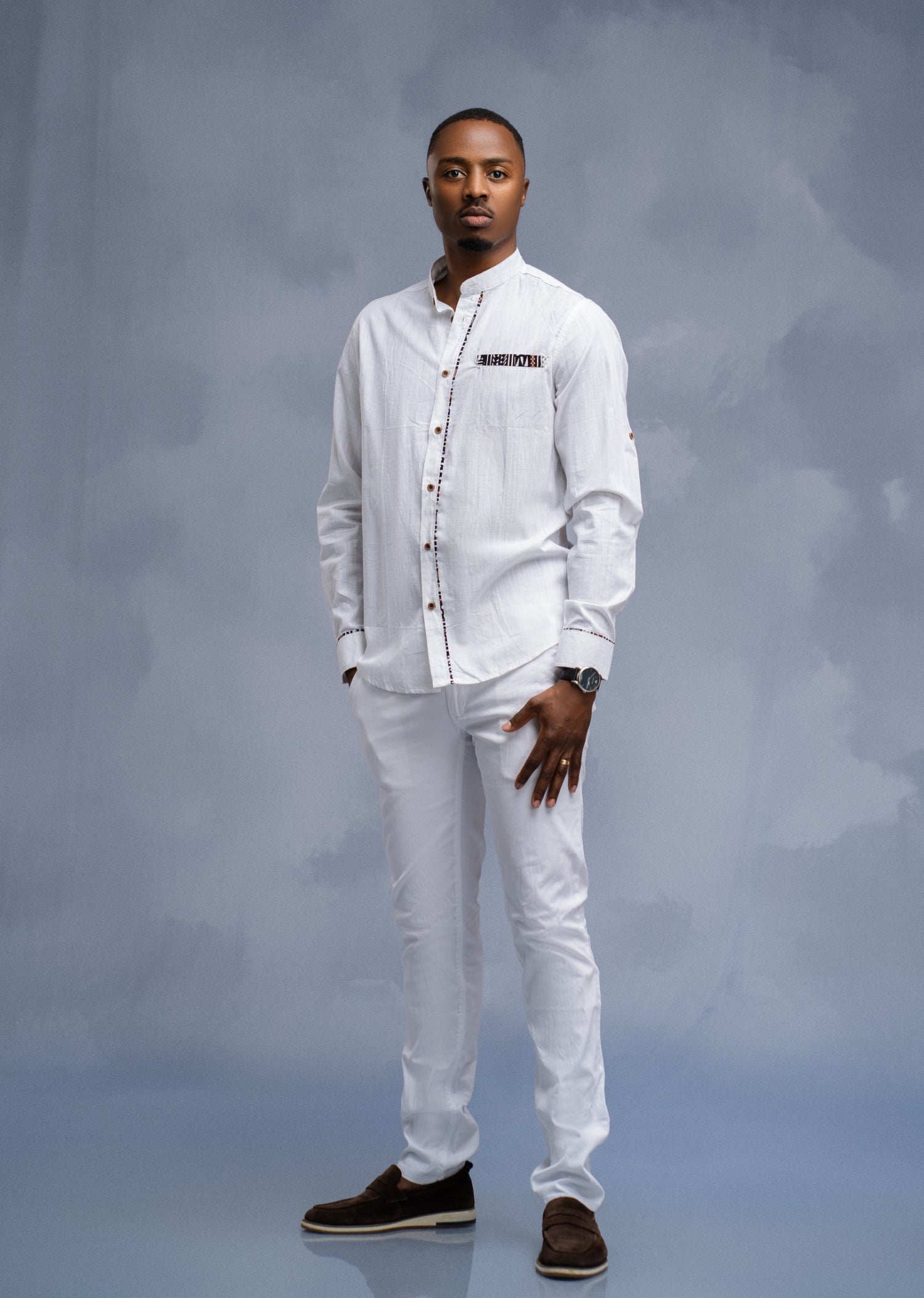 Elevate your wardrobe with our White Shirt with African Print Accents, a perfect fusion of classic sophistication and vibrant heritage. Crafted from premium, breathable fabric, this shirt offers both comfort and style, making it an essential piece for any modern wardrobe.