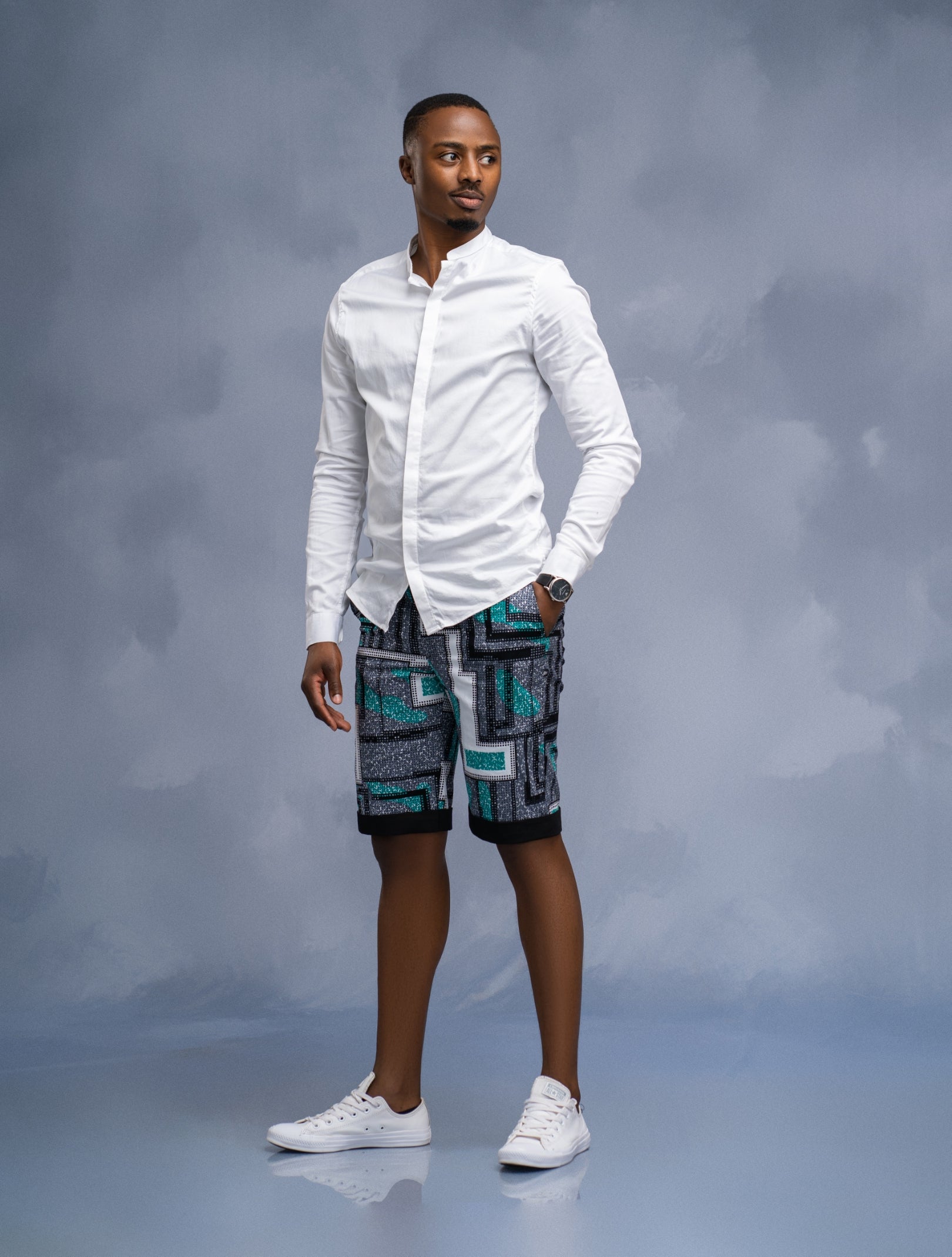 Designed for those who appreciate bold yet refined fashion, the striking African print details add a unique touch of cultural richness to a timeless white canvas. Whether you're dressing up for a special occasion or keeping it effortlessly stylish for a casual day out, this versatile piece ensures you stand out with confidence and elegance.