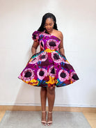 "Make a statement in our Zuri~ One shoulder Dress! With its bold Ankara print and skater dress design, you're sure to turn heads. Stand out in style and feel confident as you show off your unique fashion sense. Perfect for both formal and casual occasions. Own the spotlight in The Zuri~ One shoulder Dress!"