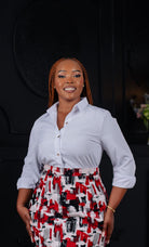 The Sally Shirt Top is a white, elegant shirt designed specifically for women, offering a polished look suitable for professional settings. Its classic design promotes versatility, allowing for seamless integration into various outfits, and contributes to a cohesive wardrobe for formal occasions.