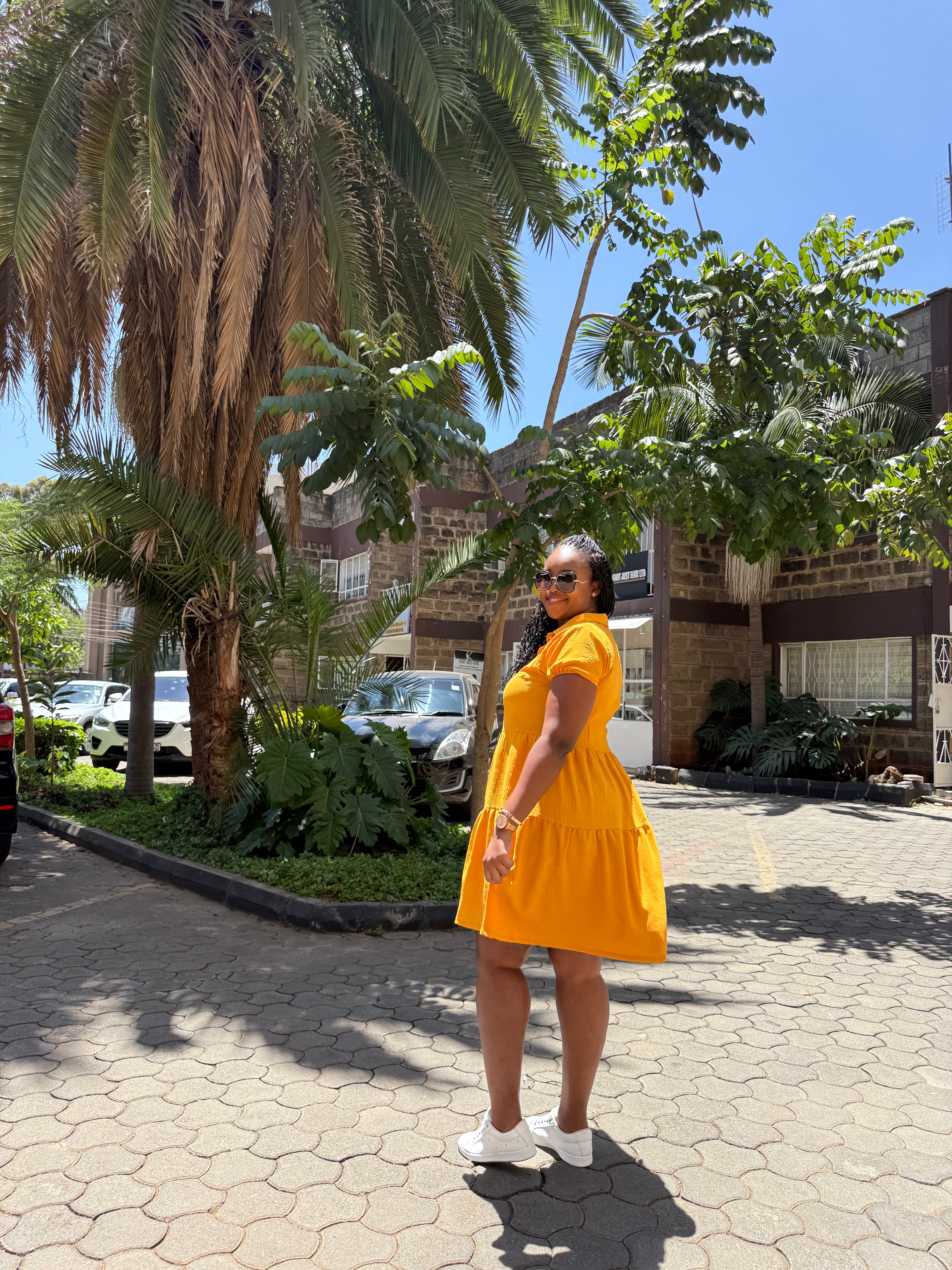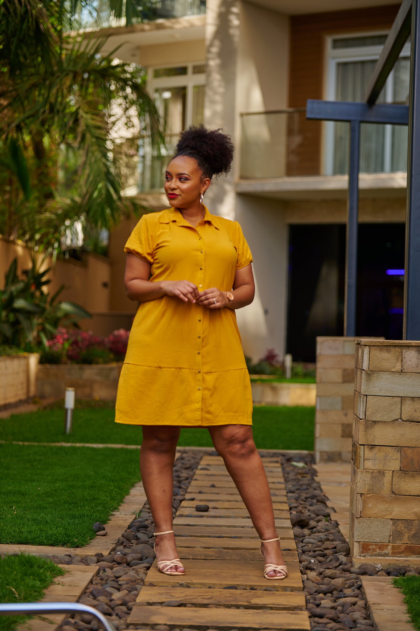 This Tunu Mustard knee length shirt dress with with frills is the one of our most comfortable dresses.