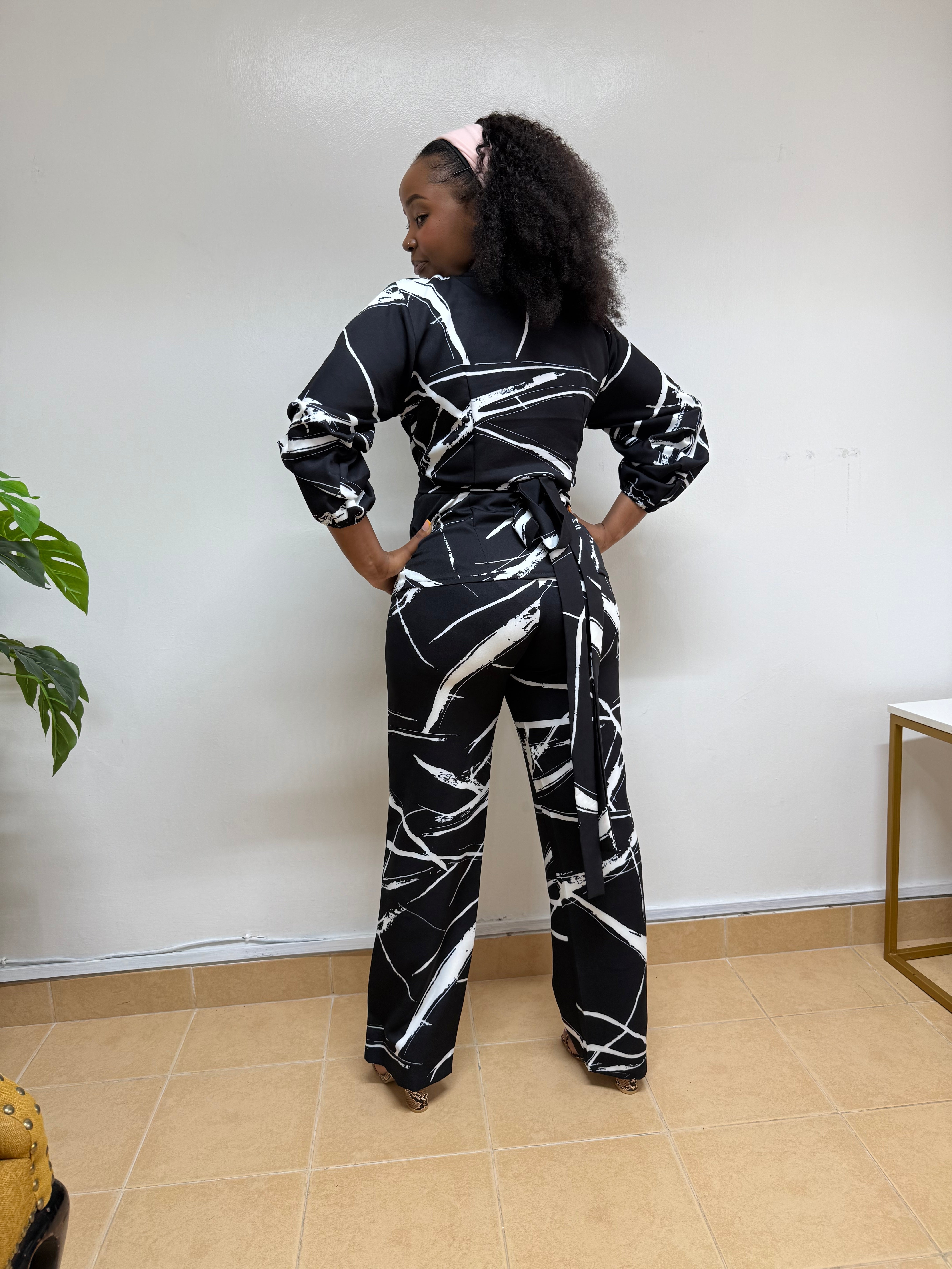 Elevate your wardrobe with the Monochrome Muse Pant Set — a striking blend of classic black with refined white accents that speak understated elegance. This two-piece ensemble is tailored for both power and comfort, perfect for the woman who balances boldness with grace.
