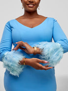 V-Neckline Taraji Dress with a clean finishing, long and fluffy feathery sleeves.